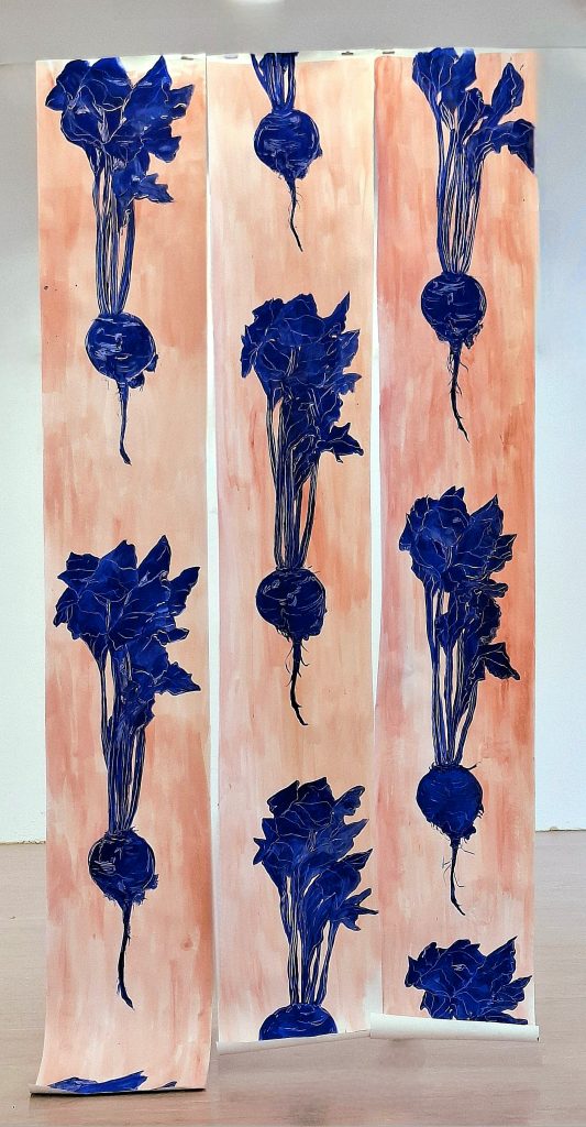 Tableau vivant 3 (A big turpin grew), 2025, tempera, pigments at Erfurt wallpaper
